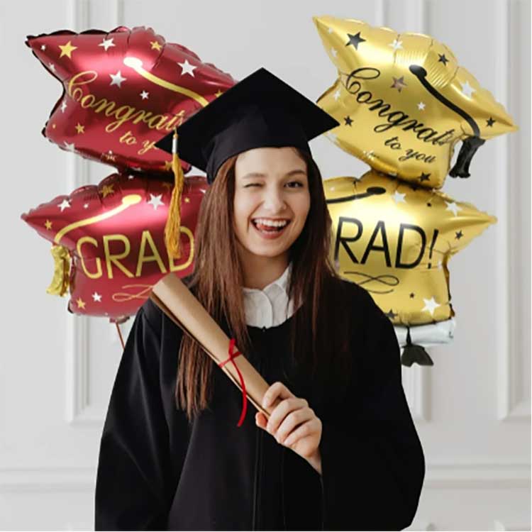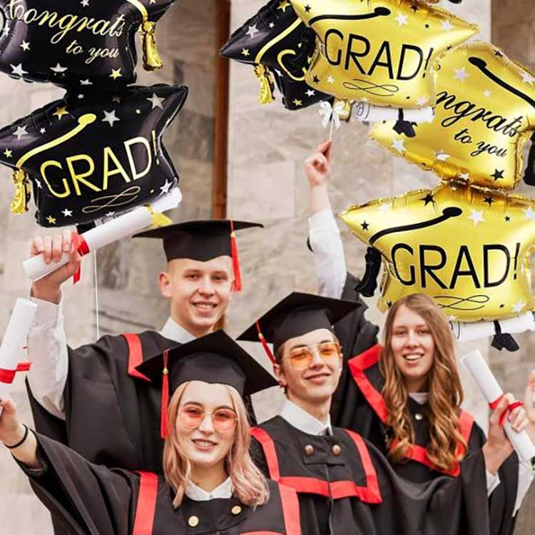 Nostrae 32 Unciarum Graduation Cap Balloons Set fiunt ex 18-crassatis altus qualitas aluminizata PET cinematographica. Haec pellicula egregiam elasticitatem habet, plene et fluffily inflat, et compressioni et ictum repugnat — perfectis scholis similibusque venuibus. Utimur environmentally- amicalibus inks ad imprimendum, unde in vibrantibus, etiam coloribus flori repugnantibus. Etiam post horas expositionis ad solis lumen directum, ut in ceremoniis graduatio velit, exemplaria et colores semper vigent.