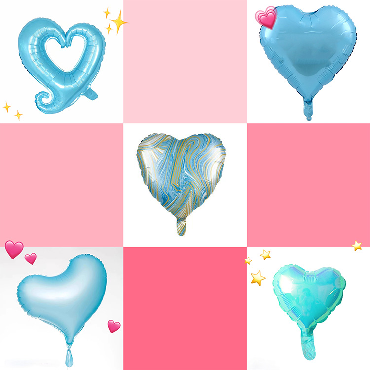 Classic genusCor Blue BalloonMateria ffoyle probatissima facta, varietates magnitudinis habet cum digitis V, digitis X, XVIII digitis;