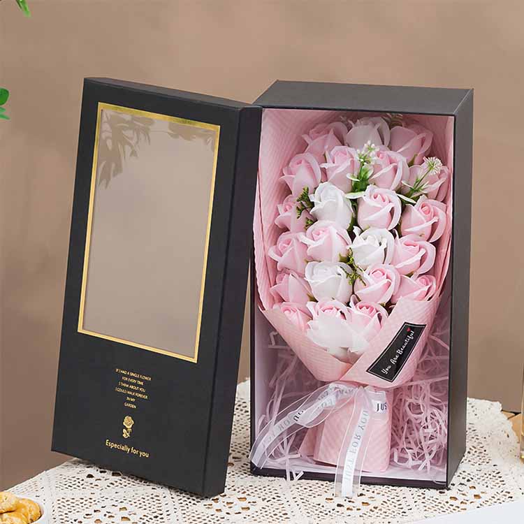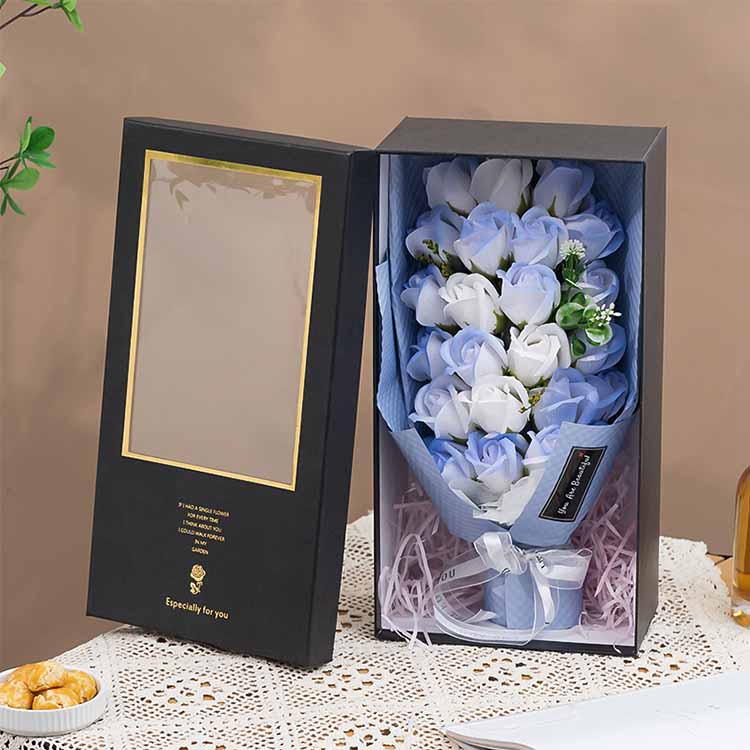Arca doni Bouquet calidum habet signatum, fines pellucidum et materias caelatas, quae flores magis stratos et summum finem facere possunt. Materies cardboard, laminatio et materies environmentally- amicae sunt, quae anti-pressio et anti-deformatio sunt. In quolibet festo, clientes secundum necessitates redimere possunt, quod est valde efficax.
