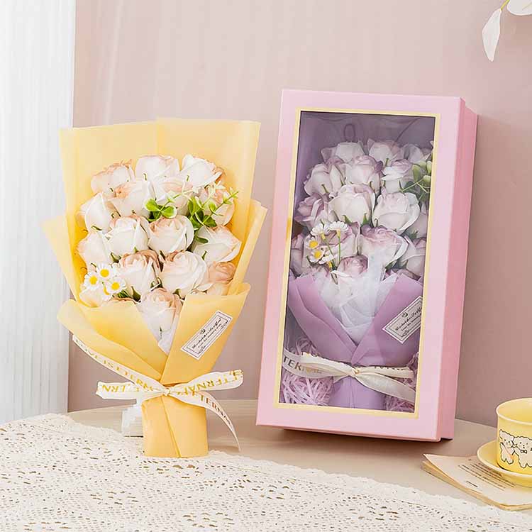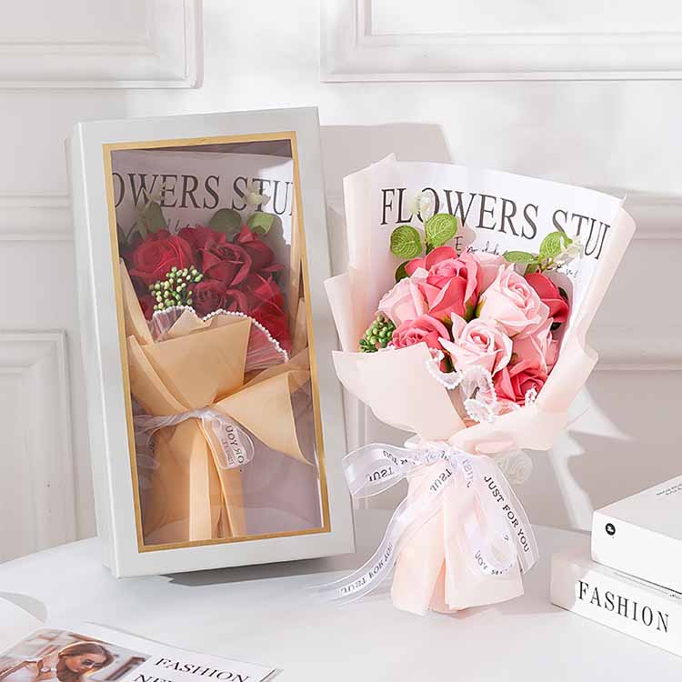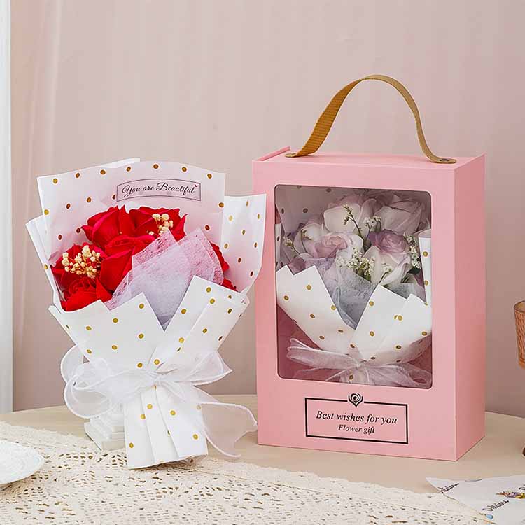 Arca doni Bouquet parvas et magnas magnitudinis habet, eam mercari potes secundum necessitates et optiones tuas, et fasciculum plerumque in saccis OPP et saccis est.