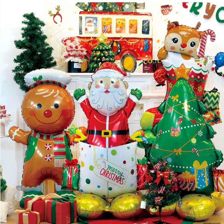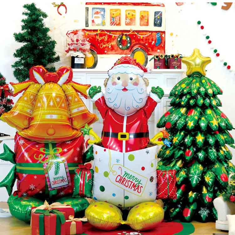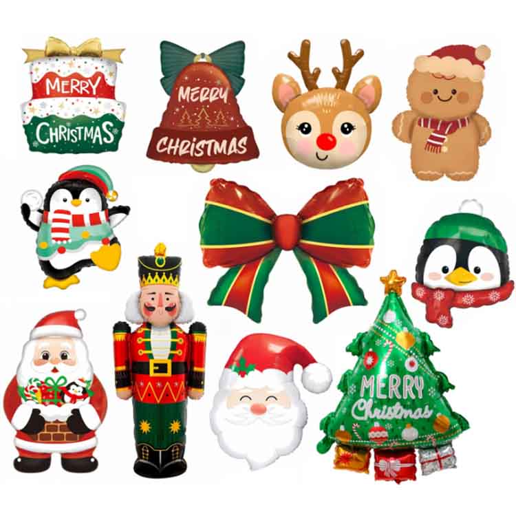Natale aluminium foil balloons specialiter destinantur pro tempore Nativitatis venturae. In officina e qualitate aluminii claua facta, textura metallica possident et flexibilia sunt. Postquam inflati, figuram tres dimensivam efficiunt, fracturae et liberorum resistunt, eorumque plenitudinem diu conservant.