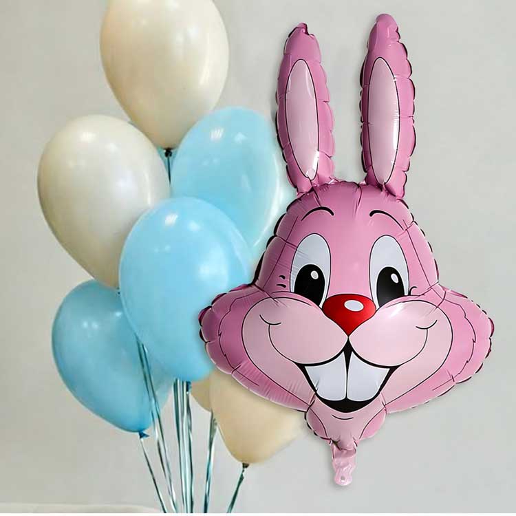 Hoc paschale Rabbit Foil Balloon mensura 53cm x 83cm cum non inflata et 43cm x 70cm cum inflata. Ex nylon incrassatis factae, balloons plumae vivae impressorum consiliorum et in quattuor coloribus praesto sunt. Quaelibet sarcina 50 pisces continet. Hi pisces helium impleri possunt et in aere innatare.